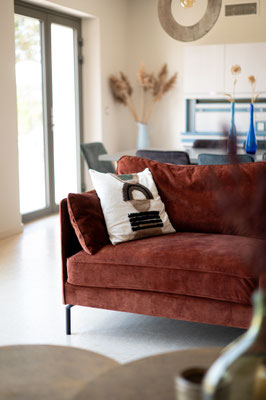 La piscine aux allures de bassin méditerranéen de 17m2 en pierres de taille locale a pris place sur le côté droit de la maison, entourée d'un mûr en pierre et d'une terrasse bois. Devant la maison, un grand espace herbacé (en cours de végétalisation) vous attend avec son coin repas et détente devant la pièce intérieure du Spa.